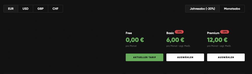 Diese Preise gelten allerdings alle bei einem jährlichen Abonnement, der monatlich kündbare Preis ist etwas höher.